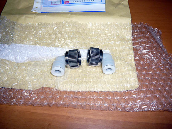 今までお話しした部分に継手がつきます。最近では各メーカーともワンタッチ継手を使用しています。外径10mmホース用キリンのエルボータイプであれば・・・。