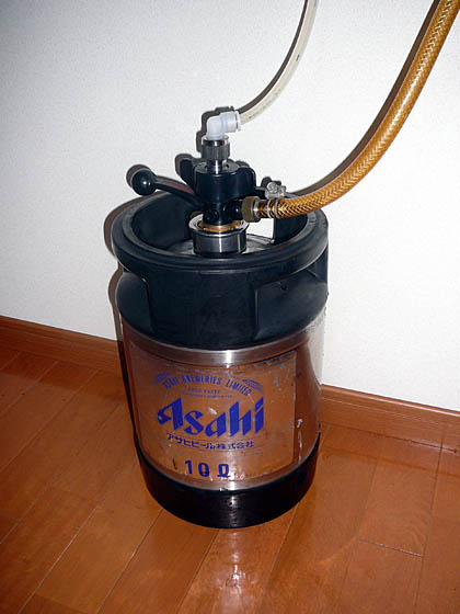 そこで、お教えいただきたいのですが、サーバーの付属物として、キリンのタップ、タップからサーバーまでのチューブ(結構きたない)、それと、自転車のポンプみたいなものがついていました。レギュレーターとボンベは別に手に入れましたが、ガスラインをつなぐチューブ、コネクター類がありません。