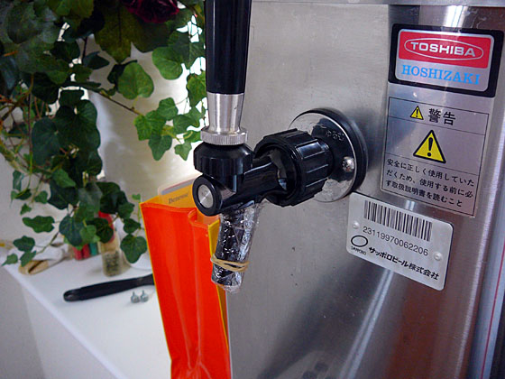 ↑ディスペンスヘッド。樽生に直接付けるヘッドです。ちなみにアサヒビールのものです。