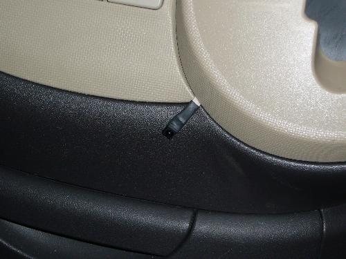 拡大するとこんな感じ。 車両側は全くの未加工のまま、隙間から配線(フラットケーブル状)を出して、強力両面テープでペチョッ!と貼り付けました。