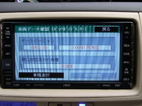 で、『バックガイドモニター調整』ボタンをタッチすると、こんな画面になりました。 車両データ確認画面の中の、『車種選択』ボタンをタッチします。