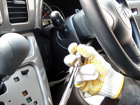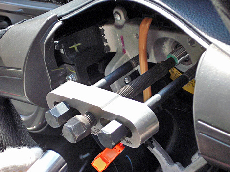 引き抜いて取外すのですが、硬くて外れない場合は、ステアリング取外し用の専用工具が必要になります。