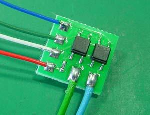 4ヶ所の半田付けができたら、ADP01の基板を、黒いリレーの上に貼り付けます。