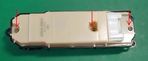 マスタースイッチの矢印部のネジ3本を外す。