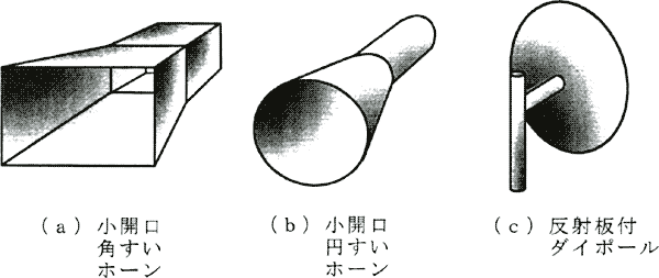 図3・12に開口面アンテナの例を示す。(a)角錐ホーン,