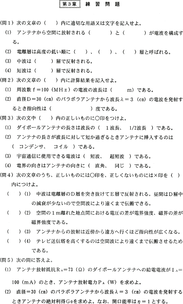 の関係がある。アンテナ係数AFが知られているアンテナで電波を受信したときのアンテナ出力電圧Vが測定できればその場所の電界強度Eは(5・58)式から