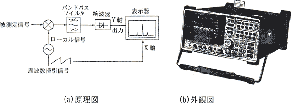 ![]() 一般に高い周波数はアナログスペクトルアナライザ,低い周波数スペクトルはデジタルスペクトルアナライザが使用される。周波数を変換することからミリ波や光の波長のスペクトルまで測定できる測定器が市販されている。スペクトルアナライザは送信機から放射される不要電波(スプリアス)の測定にも使用される。