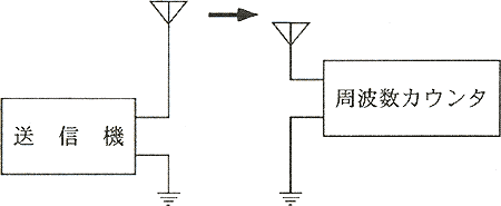 図5・24に周波数カウンタによる送信機の周波数測定の構図を示す。