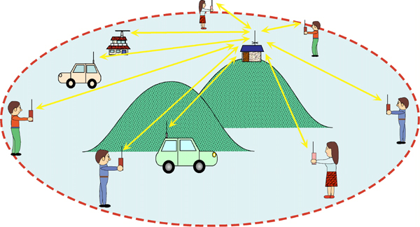 レピータはV/U/SHF帯のハンディートランシーバーなどの小さなパワーのトランシーバーなどでも,広範囲に交信が楽しめるシステムです。