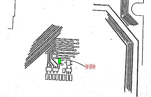改造ポイントは下記図のチップ部品をハンダゴテで削除するだけです。