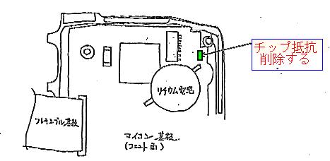 改造ポイントはリチュウム電池の右上のチップ部品をハンダゴテで、削除するだけです。