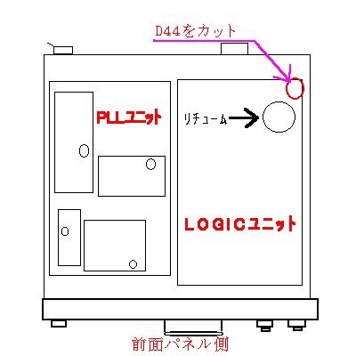 IC−275拡張方法 拡張後の受信周波数範囲 138〜174MHz FM 改造ポイントはロジック基盤の下記図のチップ部品 D44をカットするだけです。 上部ケースを外し、前面パネルを手前にして、右側のロジック基盤のケースを外し、 リチューム電池の右奥のダイオード部品です。 リセットを忘れずに !! リセットはオールリセット [M-cl]を押しながら電源を入れる。 以上で終了です