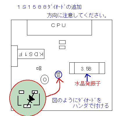 ダイオード追加後、ショートをしないように、テープ等で、ダイオードをガードして下さい。