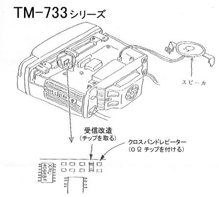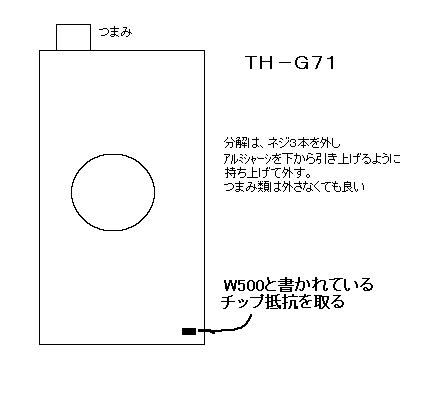 | TH−F7 | 0.1〜1300MHz | 前面ケースを外して図のチップ抵抗を取る |