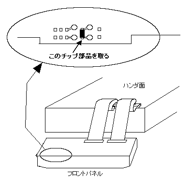 フロントパネルの裏側の図のチップ部品を取る | リセットは [MR]+電源ON |