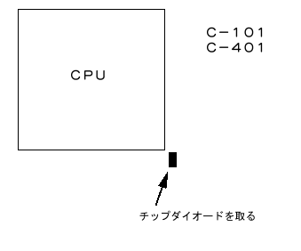CPUの横にある図の3本足チップダイオードを 取る |