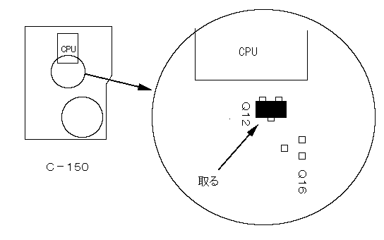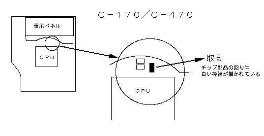 | C−170 | 82-999.990MHz | CPUの上方にある図のチップ部品を取る | コマンド不要 |