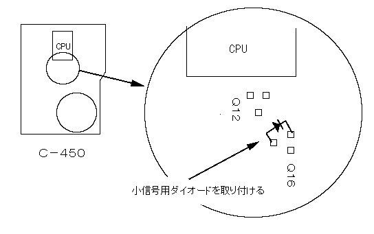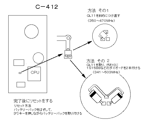 | C−412 | 341〜503MHz | CPUの左にあるQL11を取り図の加工をする | リセットをする(図に記載) |