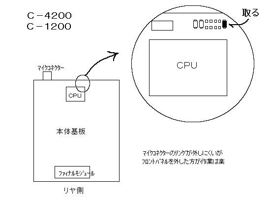 | C−470 | 82-999.990MHz | CPUの上方にある図のチップ部品を取る | コマンド不要 |