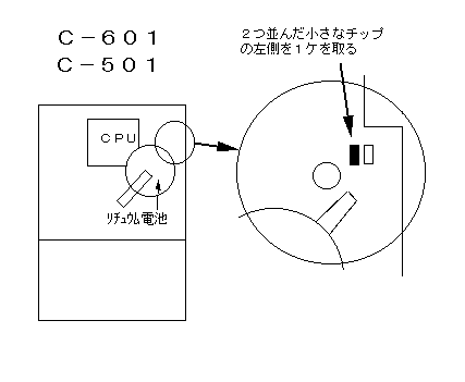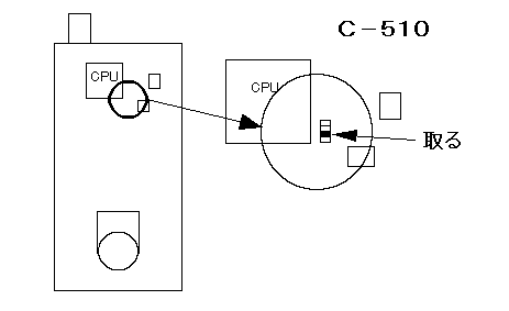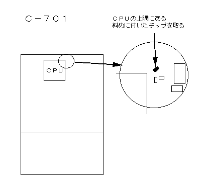 CPUの右下にある図のチップ部品を取る。 完了後にリセットする。 リセット= [F]を押しながら[0]→[3]→[0]→[1] |