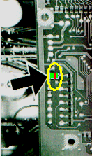 ☆バンド 16MHz〜30MHz SSB・AM・CW 送信改造は1つのチップダイオード部品をはずすだけ!! 改造箇所は、無線機本体のケースをはずして、 フロントパネル部の後のリチューム電池が有る基板をの裏側です。 下記の図を参考にして下さい。 リセットは、A=Bを押しながら電源SWをONです。 以上で、完了です。 バック