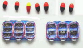 ) A当たりウキはハリスの重みで自立する棒型ウキにする・遠投で使用しても良く見えるので 飛ばしウキはエサ取りの関係から色の付いてない透明のびんびんボ−ルが良い