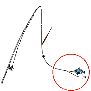 同じです。 仕掛は、 エサとなる魚の尾びれの付け根をミチ糸で縛るだけです。(投げたはずみで エサが外れた、なんて事にならないように縛ってください。)ハリもウキも 一切ありません。ただし、サオ先に鈴かケミホタルをつけます。 あたりは、 サオ先の鈴やケミホタルが教えてくれるのですが、問題は 取込みです。リールは 使わず、ミチ糸を手に持ち少ぉーしずつ手繰り寄せます。この時、イカの抵抗を 感じたときは手を緩めて糸を送ってください。無理に引くとイカは放れてしまいます。 岸近くまで寄せることが出来たら、ヤエン(私の周囲ではロケットと呼ばれています。 細い金属棒の先に餌木についているようなハリがついておりミチ糸を滑り落ちイカを引っ掛ける 道具です。)を投入して イカを引っ掛けます。足元まで寄せたらタモ網ですくいます。 文章にすると以上のようになるのですが、この釣り方は「慣れ」が必要です。 はっきり言って最初のうちは成功率が低いと思いますが、やり取りの面白さに 魅せられて、この釣り方しかしない人もたくさんいます。 |