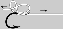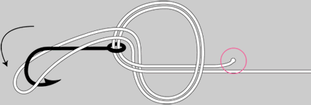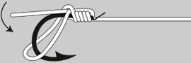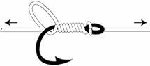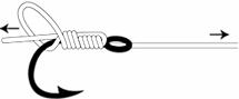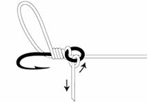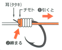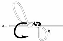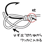 | サルカン(ヨリモドシ)の他に、ルアーなどリング状のものに結ぶときの基本結び。 |