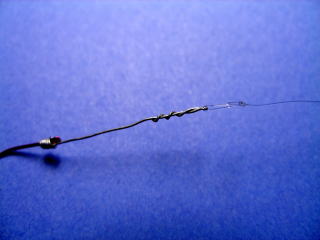 ![]() 余った糸を切って出来上がり ハリスに癖が付いた時はやり直します |