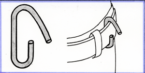 細いラインで大物に挑む場合、ラインの先端にライン・システムを作る事が常識になっていますが、せっかく作るライン・システムは『最強』にしたいものです。 最強のライン・システムに不可欠な作業が「ビミニ・ツイスト」です。 「ビミニ・ツイスト」は、操作方法さえ覚えれば、短時間で「強度100%」のダブル・ラインが作れます。 同じ「強度100%」のダブル・ラインに「三つ編」が有りますが、「ビミニ・ツイスト」とは比較にならない程の時間が掛かります。 「ビミニ・ツイスト」の作り方は、「ルアー釣り」「ライン・システム」等の手引書に広く紹介されておりますので、ここでは省略をさせていただきますが、問題は、「ヨリを入れたループ状のラインを広げて、ヨリの上にヨリを重ねる」時、自分の2本の腕だけでは足りず、もう2つ(1つでも可能)の支持部が必要となる事です。 自宅で作る場合は、手引書のように曲げた両ヒザ(片ヒザ)を使えば簡単ですが、足場の悪い釣り場で糸が切れ、「ライン・システム」を作り直す場合(極端な例では、ヒザまで立ち込んでいるような場合)2本の腕だけしか使えません。 ベテランの方々は、リールのハンドルにループを掛けたり、ループ自体を小さ目にして、片手の指だけでループを広げたりして作りますが、余程熟練しないと、ヨリが緩くなりがちです。 そこで、支持部の役目を果たす「補助具」を作って、ベルトにつけておく方法をご紹介します。 補助具と言っても『太めのステンレス線(錆びないよう)』を下図のようにペンチでまげて、ベルトに取り付けるだけです・・・錆を気にしない場合は、直径5mm程のアルミニウム線を使うと、曲げるのが簡単です。 |