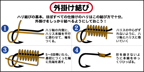 外掛け結び 釣り用針結びは外掛け結びが一番簡単です。