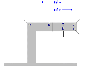 2.潮の流れが緩やかな所 あまり潮が速いとウキがダンゴを引っぱってしまい、ダンゴが割れても