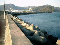 | ポイント・・・G 2002.8.15 早朝4:30-8:00 場所 小川港 石津突堤 ロケーションは写真のように極めて 良好。これで魚が釣れれば最高だ!! 小川堤で青物狙えばいいじゃん。夜ならタチウオとかも 石津堤のテトラ帯や小川新堤(沖堤)新港テトラ帯で良く釣れるらしいです 夜、新港へ行けば良いかもしれません |