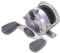 片軸の太鼓リールでは勝負になりません。といって石鯛リールというのもバランス的にピンと来ませんし、スピニングはこの手の釣りには使い勝手が悪いですね。そこでやや小振りのアンバサダー#4600クラスを考えてみました。これならパワーハンドルに付け替えれば、そこそこパワーがあります。左ハンドルの4601もお薦め〜私も二つもっています。上手に探せば、インポート通販でかなり安価に入手できるはずですよ。